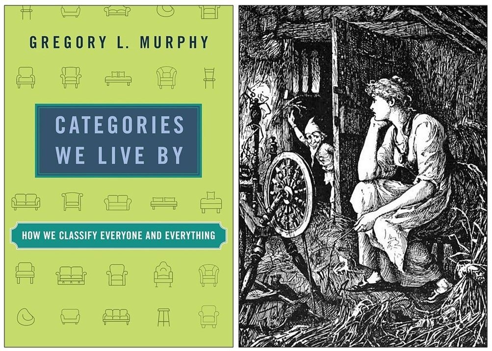 Left: Gregory Murphy’s book Categories We Live By (2023). Right: Illustration from Andrew Lang's The Blue Fairy Book (1889); the Rumpelstiltskin Effect is a phenomenon where simply naming a condition or diagnosis provides therapeutic relief, validation, and reduced anxiety for a patient, independent of any active treatment.