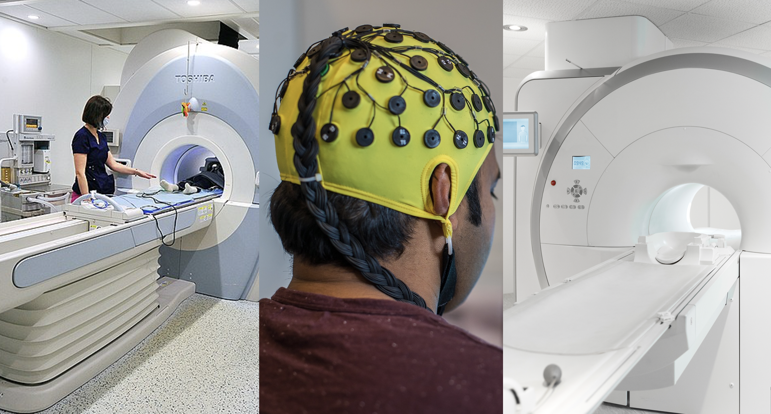 Brain imaging with functional magnetic resonance imaging (fMRI), cranial electroencephalogram (EEG), and positron emission tomography (PET).