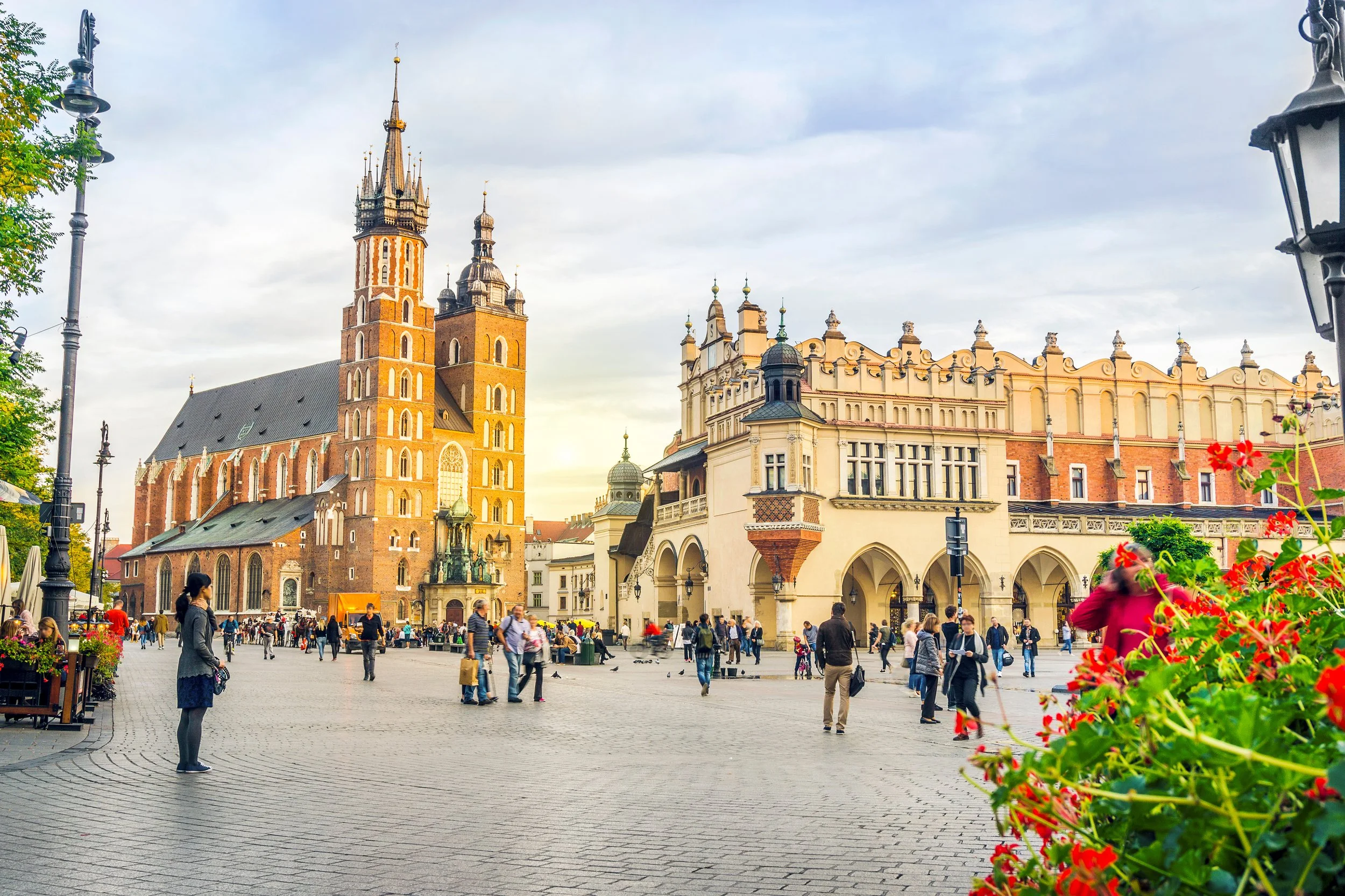 St Mary's church, Cloth Hall, and Main Market Square in Krakow.
